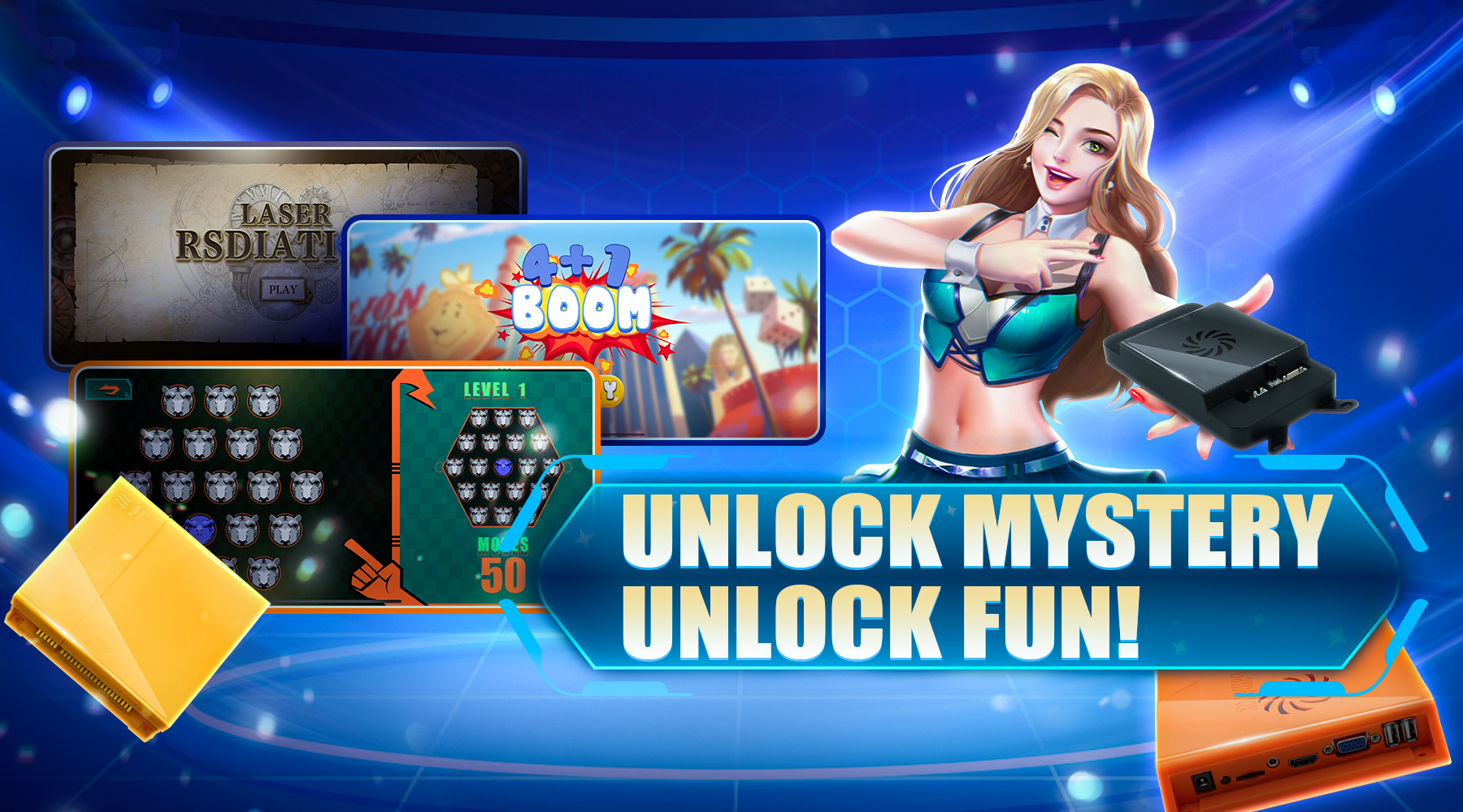 Experience gaming like never before with our self-developed titles. Simple HDMI plug & play design, no internet required, just pure fun for families and gamers alike.